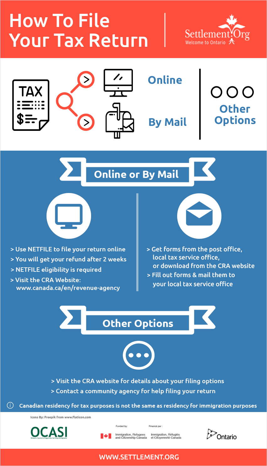 You can also visit the CRA website for information about your filing options or contact a community agency for help filing your return.